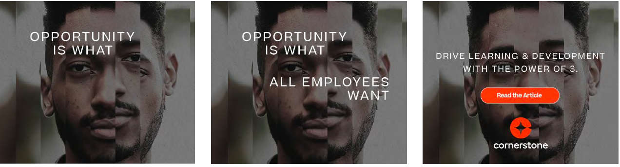 Every business must comply with state mandated annual training. Cornerstone is learning management software for companies that not only assures compliance with state-mandated trainings, but elevates employee engagement through continuous upskilling. We created a campaign that helped Cornerstone reframe tense conversations between employees and people across the culture.